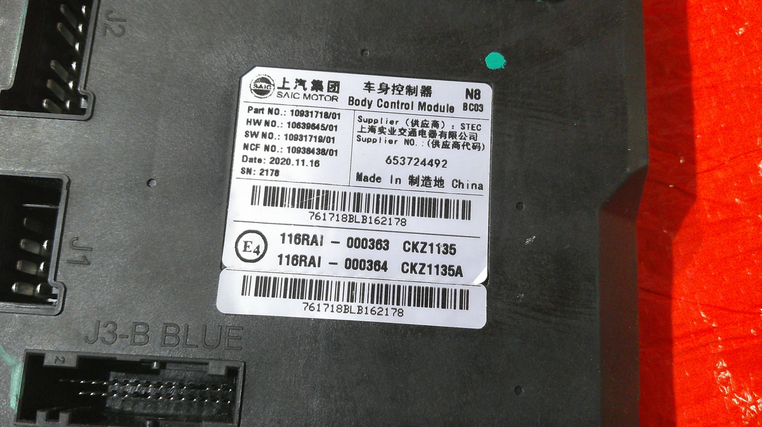 MG ZS EV 2021 MODUŁ STEROWNIK KOMFORTU BCM 10931718